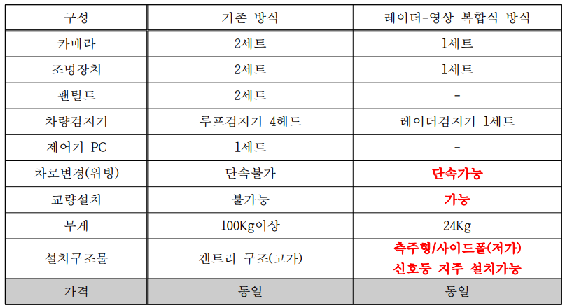 단속카메라가 대폭 가벼워지면서 우선 설치비가 대폭 절감 되었습니다. 단속카메라를 설치하는 지자체나 경찰청의 예산에도 그만큼 여유가 생길 것으로 보입니다. 또 센서를 매립하지 않아도 되므로 앞으로는 날씨나 도로 상태와 무관하게 어디에나 간편하게 단속카메라를 설치할 수 있다고 하네요. 단속카메라 시공 기간도 대폭 단축되었습니다. 신호등 위에도 비교적 쉽게 달아놓는 게 가능합니다.