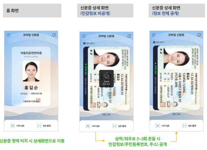 | 통신 | SKT, KT, LG U+ | ‣고객이 통신사 직영점에서 휴대폰 개통 시 모바일 신분증 앱으로 QR코드를 촬영하면, 직원이 고객의 신원확인 |