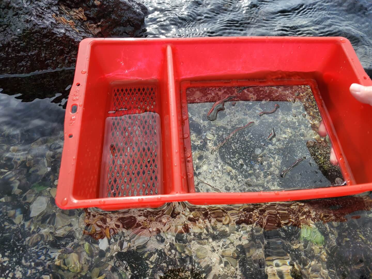 이걸 돌틈 낚시할 때도 바늘에 끼워서 쓰고, 남은 건 양파망에 넣어서 스노클링 할 때 사용했습니다.